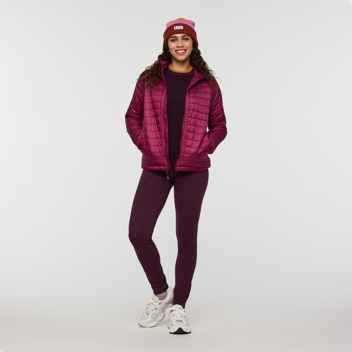 Fall hiking, cool-weather rock climbing, summer camping¡ªthe versatile Capa Jacket is here for it all. Made with Primaloft? Gold P.U.R.E. (Produced Using Reduced Emissions) 100% recycled synthetic insulation, this jacket retains warmth even when wet. To keep you really comfortable in weather, it also features a water-resistant recycled nylon shell. Packable, breathable, warm, the Capa is great for layering or as that jacket you bring on every adventure.?Also available in?Men’s.